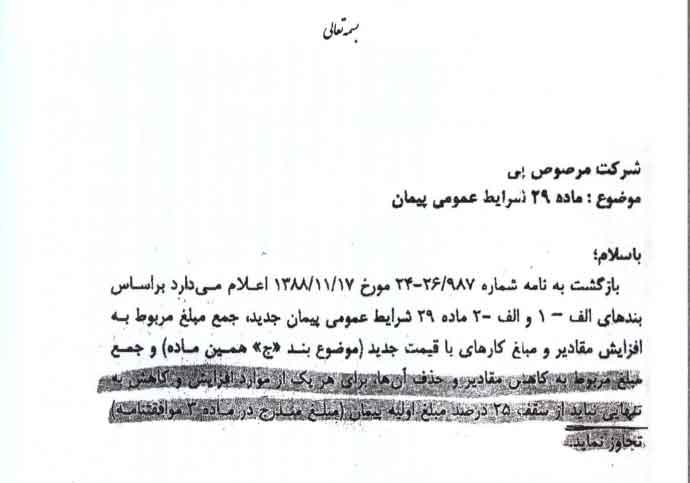بازگشت به نامه شماره 987-26-24 مورخ 17-11-1388 اعلام میدارد براساس بندهای الف –۱ و الف –۲ ماده ۲۹ شرایط عمومی پیمان جدید، جمع مبلغ مربوط به افزایش مقادير و مبالغ کارهای با قیمت جدید (موضوع بند «ج» همین ماده) و جمع مبلغ مربوط به کاهش مقادير و حذف آنها برای هر یک از موارد افزایش و کاهش به تنهایی نباید از سقف 25 درصد مبلغ اولیه پیمان (مبلغ مندرج در ماده 3 فوق تجاوز نماید.