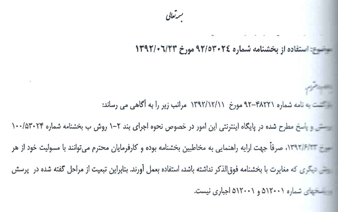 موضوع: استفاده از بخشنامه شماره 53024-92 مورخ 23-06-1392