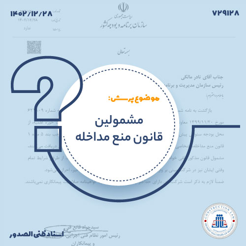 به منظور حفظ سلامت جامعه، جلوگیری از انتشار بیماری کووید ۱۹ و مراجعه حداقلی به سازمان، اعتبار گواهینامههای پیمانکاری که بالاترین پایه آن ۴،۳و۵ باشد و پس از ابتدای آبان ماه ۱۳۹۷ منقضی شده اند تا پایان مهرماه ۱۳۹۹ تمدید میگردد.