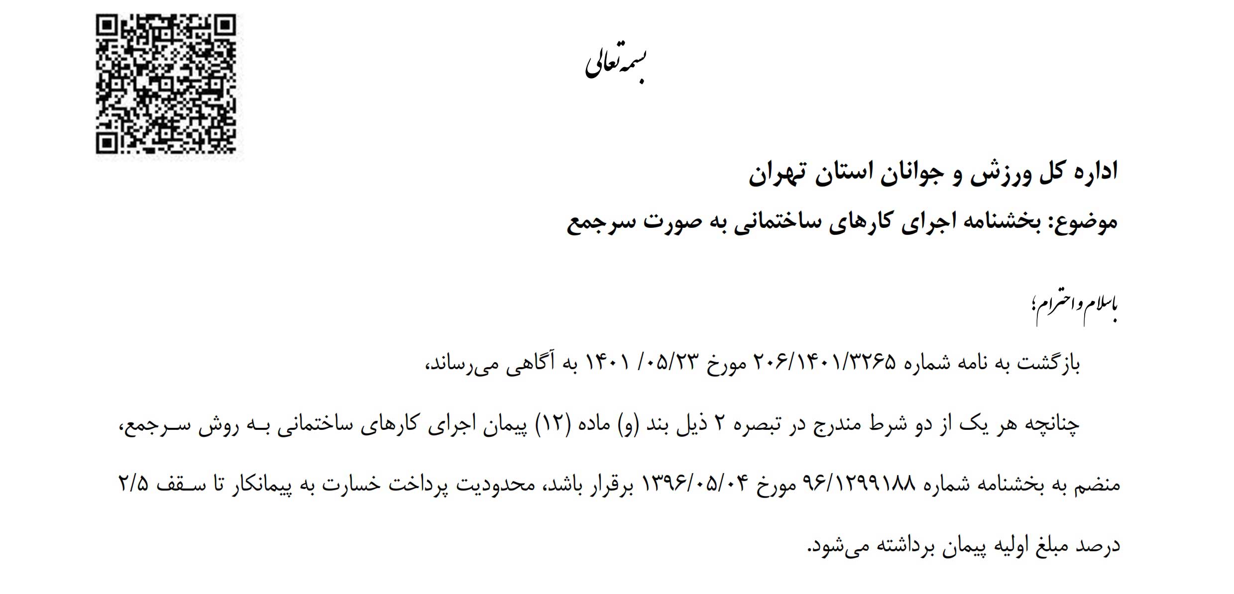 موضوع: بخشنامه اجرای کارهای ساختمانی به صورت سرجمع