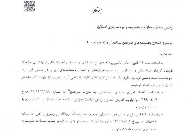 موضوع: اصلاح بخشنامههای سرجمع ساختمان و تجمیع شده راه