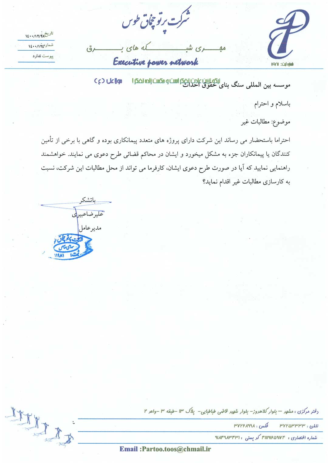 احتراما باستحضار می رساند این شرکت دارای پروژه های متعدد پیمانکاری بوده و گاهی با برخی از تأمین کنندگان یا پیمانکاران جزء به مشکل میخورد و ایشان در محاکم قضائی طرح دعوی می نمایند. خواهشمند راهنمایی نمایید که آیا در صورت طرح دعوی ایشان، کارفرما می تواند از محل مطالبات این شرکت، نسبت به کارسازی مطالبات غیر اقدام نماید؟