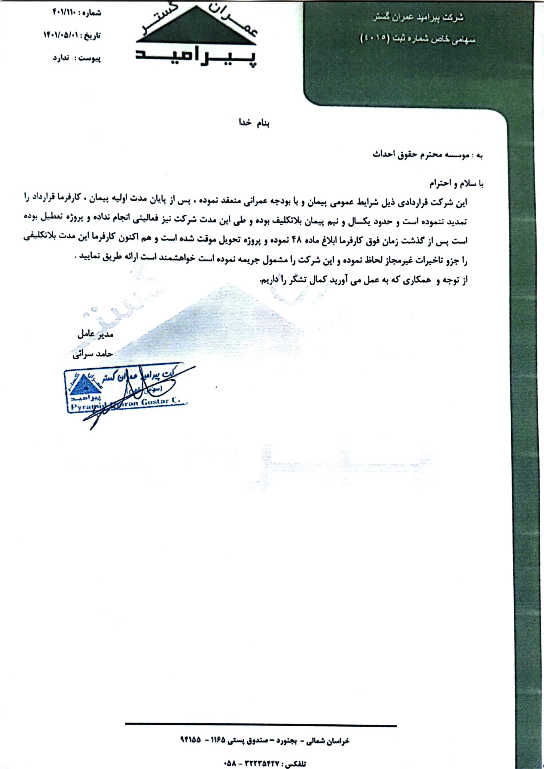 به: موسسه محترم حقوق احداث